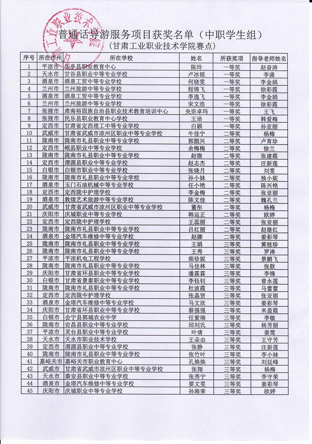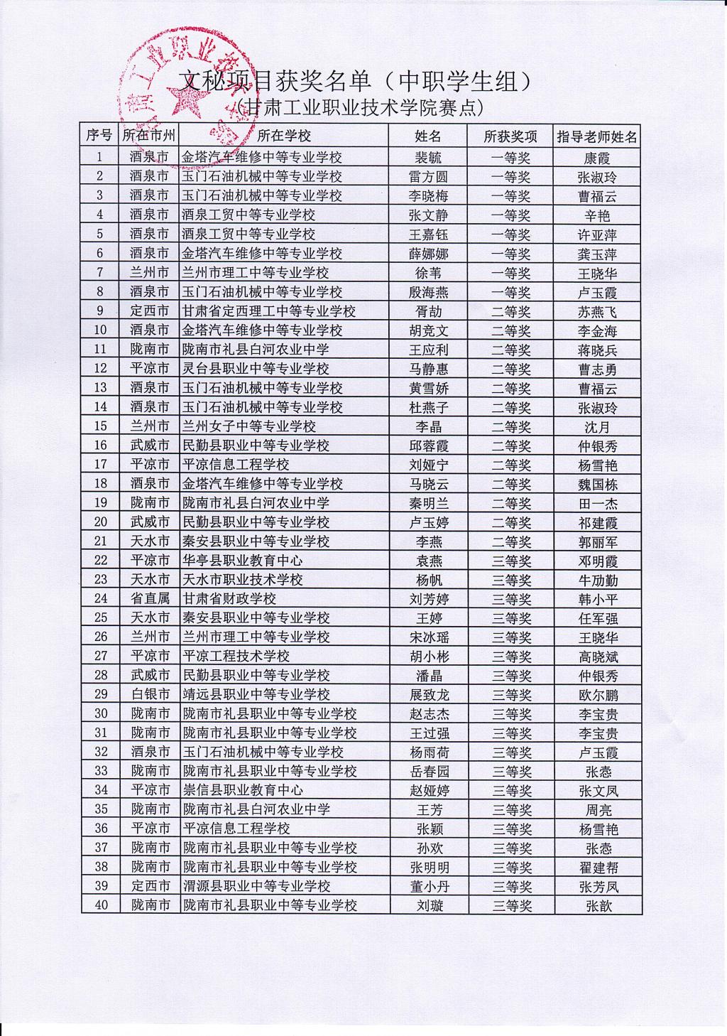 2019年全省职业院校学生技能大赛获奖名单(中职学生组)