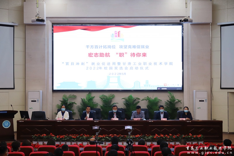 为促进毕业生尽快、尽早、充分、高质量就业,学校积极响应教育部“千方百计拓岗位 攻坚克难促就业”为主题的“百日冲刺”毕业生就业系列活动,结合属地疫情防控要求,开展了“宏志助航 ‘职’待你来”为主题的“百日冲刺”就业促进周暨甘肃工业职业技术学院2022年校园双选会。5月21日上午,学校在新图书馆五楼报告厅举行了双选会启动仪式。党委副书记、院长安建平出席仪式并致辞,部分二级学院负责人、各二级学院就业工作负责人、就业培训中心全体人员和学生代表共计200余人参加现场启动仪式,100余家企业代表通过腾讯会议形式线上参加。启动仪式由副院长曹惠清主持。