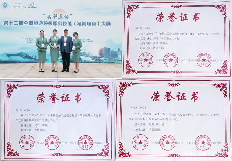 Beat365旅游学院选派3名选手参赛,经过两天5个竞赛环节的紧张角逐,旅游管理1932班王小颖获一等奖,旅游管理2033班陈笑笑、旅游管理2132班孔维秀获二等奖,教师海潮获“优秀指导老师”称号。
