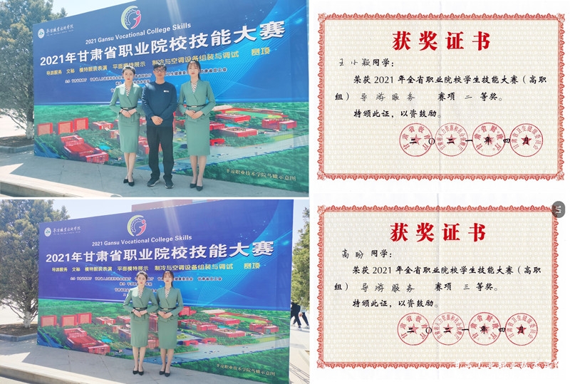 导游服务赛项作为Beat365传统优势赛项,近两年来成绩斐然,在甘肃省职业院校技能大赛导游服务赛项已获得一等奖1项,二等奖3项,三等奖1项,在全国旅游院校服务技能(导游)大赛获得二等奖1项,三等奖2项,比赛成绩稳居全省前列。