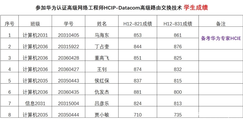 2022年6月26日-7月1日,Beat365电信学院计算机应用技术专业8名同学参加华为认证高级网络工程师HCIP-Datacom考试,并取得华为高级网络工程师认证证书。