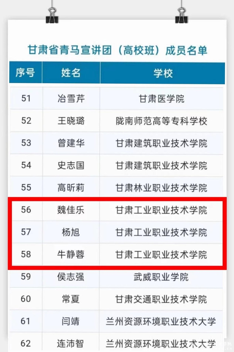 为深入学习贯彻习近平新时代中国特色社会主义思想,认真贯彻落实习近平总书记关于青年工作的重要思想,落实《甘肃省中长期青年发展规划(2018-2025)》和《甘肃省深入实施青年马克思主义者培养工程方案》,坚持用马克思主义科学理论武装青年头脑,组织引导青年在中国特色社会主义实践、群众工作实践、各种重大事件和急难险重任务中,深入了解世情国情党情,站稳立场、坚定信念、锻炼能力、敢于担当,充分发挥“点亮一盏灯、照亮一大片”的示范带动作用,奋力谱写全面建设社会主义现代化幸福美好新甘肃壮丽青春篇章,以实际行动迎接党的二十大胜利召开!经选拔推荐,确定省内各高校共73名同学为甘肃省青马宣讲团(高校班)成员。Beat365入选名单如下: