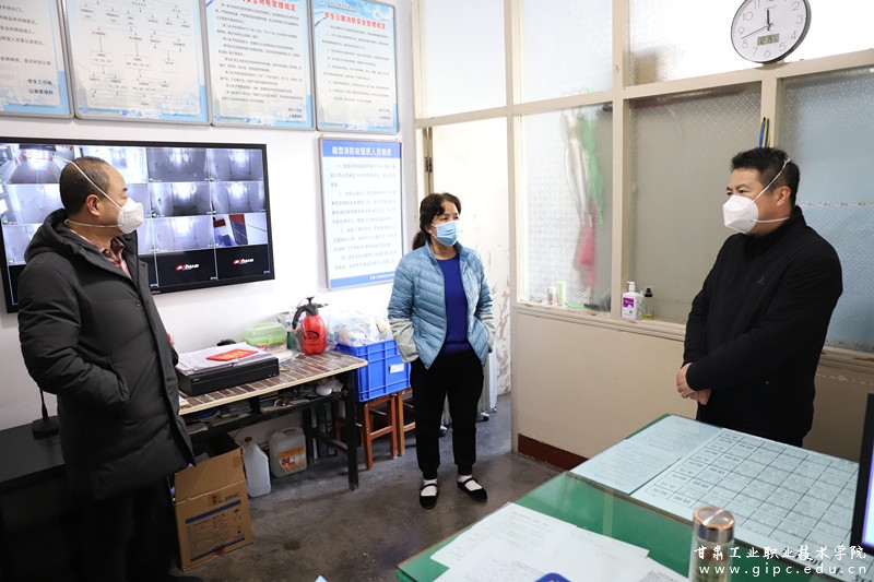 刘乃君一行对校园监控中心、学校门卫值班室、公寓值班室、楼宇消防设施等重点区域进行了全面检查。