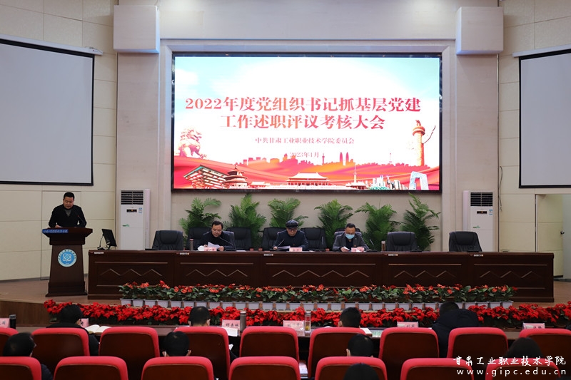 1月13日,甘肃工业职业技术学院党委召开2022年度党组织书记抓基层党建工作述职评议考核大会,校党委书记杨声出席会议并讲话,市委组织部人才工作科科长贾军焕到会指导,校党委班子其他成员,各支部述职对象、基层党员干部及“两代表一委员”参加。会议由校党委副书记、院长安建平主持。