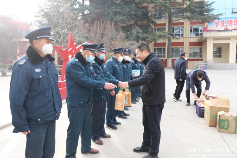 春节将至,冬寒情暖,学校党委心系学校寒假期间工作值守人员。1月17日,党委书记杨声,党委副书记、院长安建平,党委副书记刘乃君,副院长胡森林、曹惠清,在党政办公室主任周晓明、国资后勤处处长万鑫、保卫处处长张仲祥等人的陪同下,慰问了国资后勤处和保卫处寒假期间工作及值守人员,为他们带去了学校的关怀与温暖,并致以新春祝福。