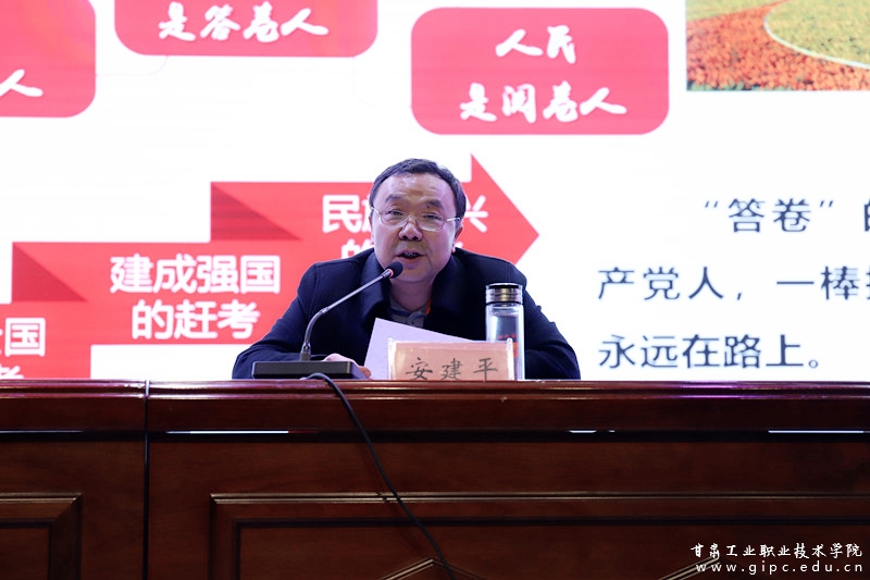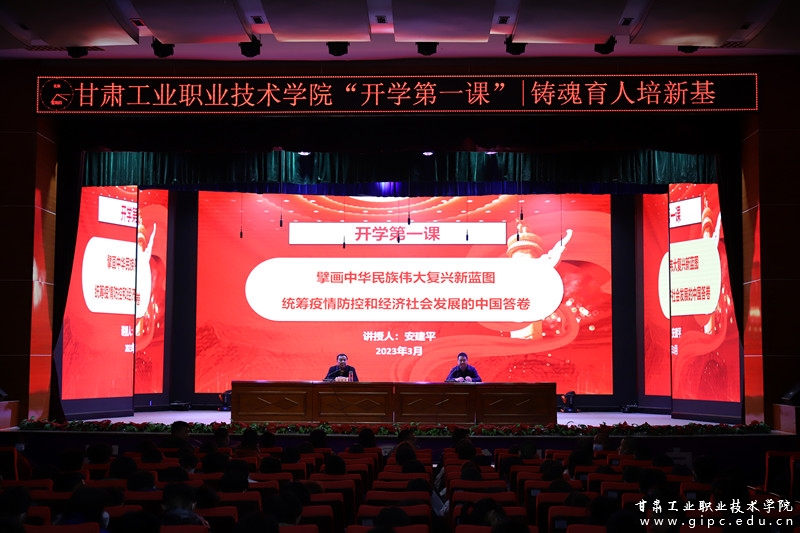 3月16日晚,校党委副书记、院长安建平教授走上讲台,以深入学习宣传贯彻党的二十大精神为主题,结合青年学生成长发展规律,以《擘画中华民族伟大复兴新蓝图,统筹疫情防控和经济社会发展的中国答卷》为主题,为全校各二级学院辅导员及400余名师生代表讲授了“开学第一课”,勉励师生坚定信念、勇挑重担,坚决扛起培育技术技能型人才的青年担当。活动由校党委副书记刘乃君主持。