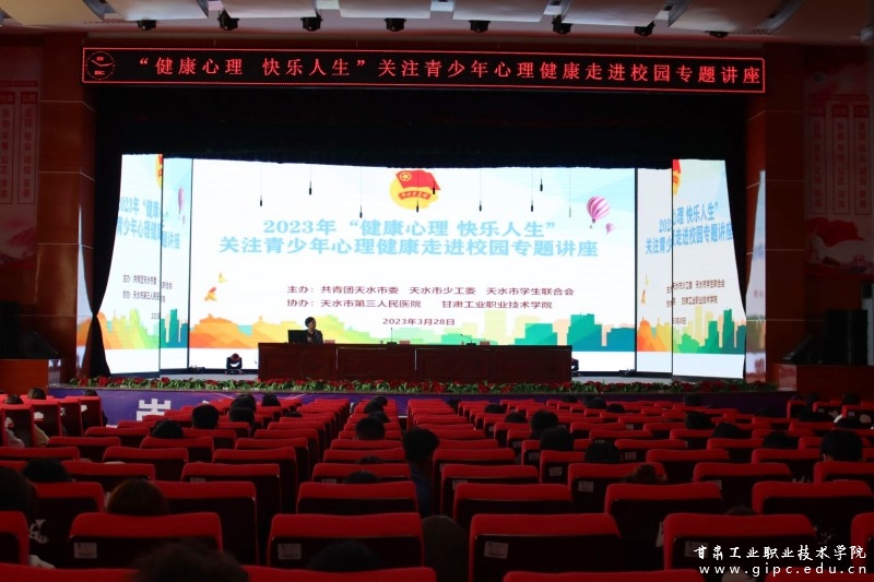 为全面加强Beat365学生心理健康教育,提高学生心理素质和道德水平, 3月28日,由团市委、市少工委、市学生联合会主办、天水市第三人民医院、甘肃工业职业技术学院协办的2023年“健康心理、快乐人生”——关注青少年心理健康走进校园专题讲座在Beat365大学生活动中心举行。