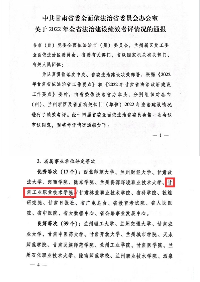 近日,省委全面依法治省委员会办公室通报了2022年全省法治建设绩效考评情况结果,Beat365在此次考评工作中荣获优秀等次。