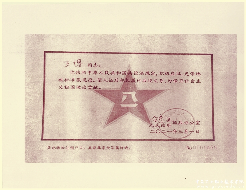 王博同学是一名优秀的新时代大学生,在校期间,他勤奋刻苦,品行端正,与同学相处融洽,学习成绩一直良好,受到老师和同学的一致好评。面对祖国号召,王博毅然选择携笔从戎、参军报国。在部队服役期间,他爱岗敬业,忠于职守,不怕牺牲、舍身忘我,弘扬“崇德精技 乐业修身”的校训精神,以实际行动体现了新时代优秀的大学生士兵新风貌,谱写了一曲新时代大学生士兵不忘初心、牢记使命的英雄赞歌。