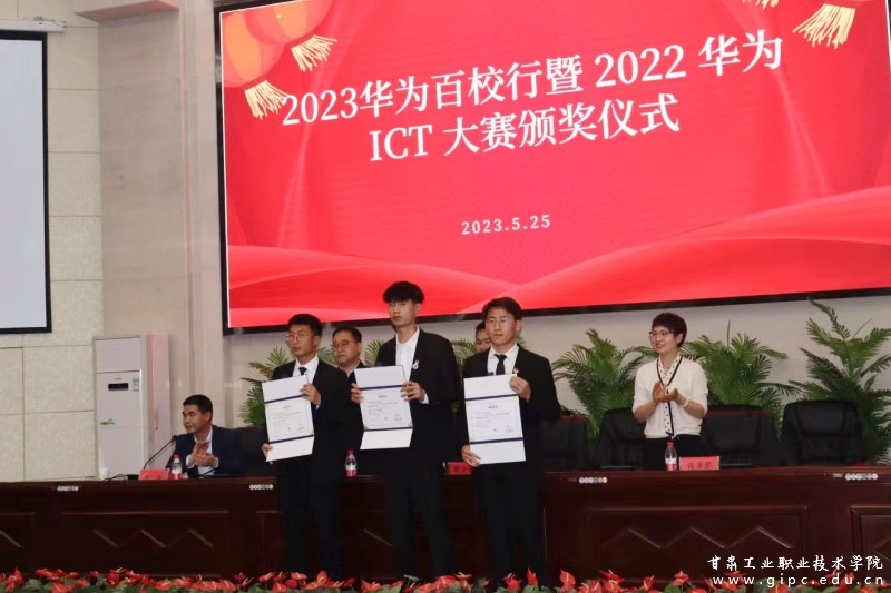 贺少辉代表华为技术有限公司对Beat365华为ICT学院授牌。并向2022年参加华为ICT大赛甘肃选拔赛中获奖的学生颁发了荣誉证书。