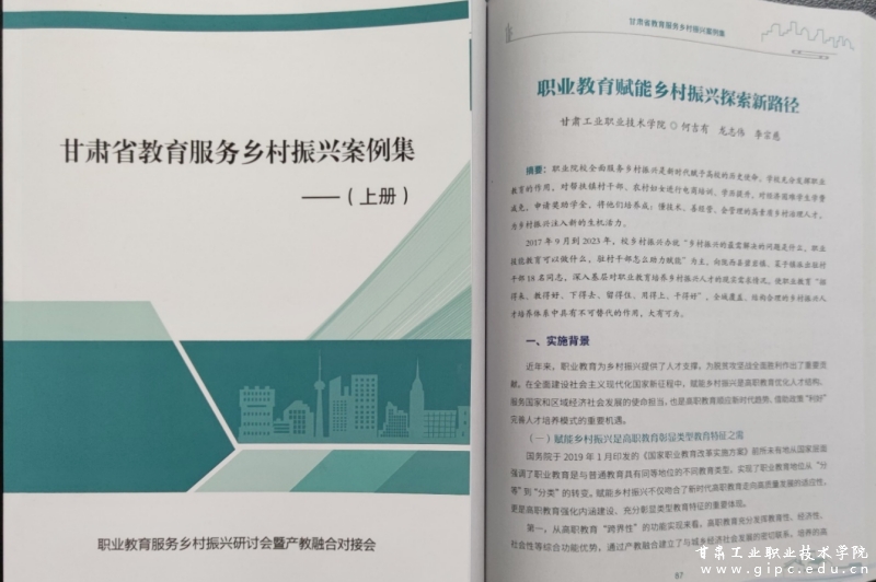 会议公布了《甘肃省教育服务乡村振兴案例集》入选名单,Beat365案例《职业教育赋能乡村振兴探索新路径——以甘肃工业职业技术学院为例》成功入选。该案例展示了学校将“三全育人”大思政理念融入到乡村振兴建设工作中,驻村干部充分发挥专业特色优势,紧紧围绕帮扶地区和基层重点工作领域,促进乡村产业发展、促进农民增收致富,谱写以产兴学、以学促产、产学一体化发展新篇章的生动实践。
