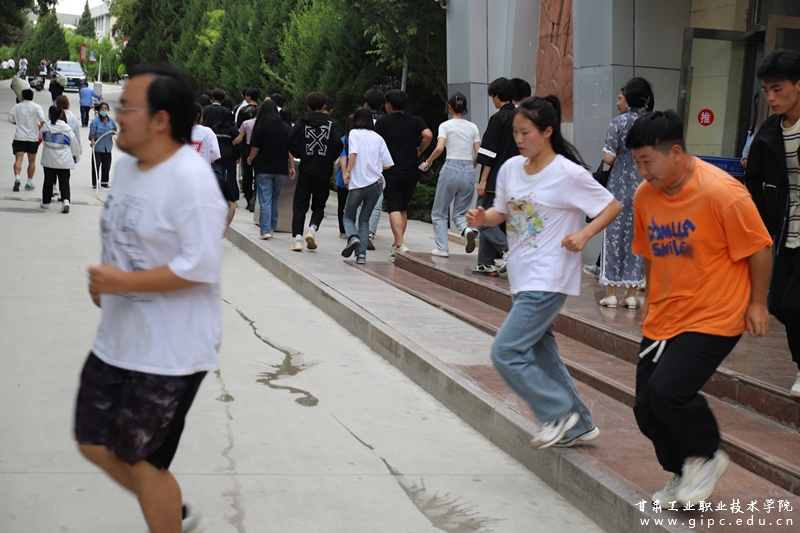 宣讲结束后,在警报声响起的同时,同学们在各二级学院辅导员的引导下分别从大学生活动中心疏散通道紧张、有序撤离到预定集合点。整个演练过程紧张有序,有条不紊,没有发生任何互相推挤或踩踏事故,逃生过程用时45秒,比原定时间缩短15秒,达到了预期效果。