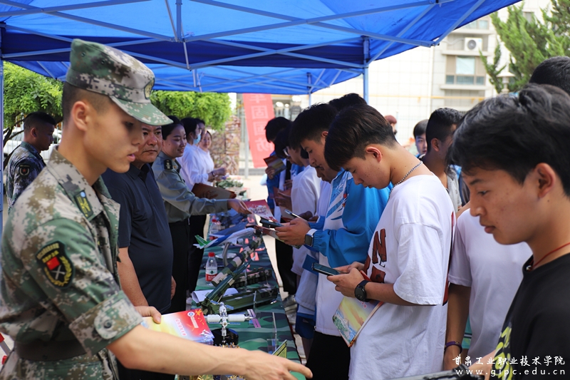 在大学生活动中心东门广场进行的大学生应征入伍政策咨询和讲解互动环节中,同学们热情洋溢、积极咨询,充分展现了当代大学生敢于有梦、敢于追梦、敢于圆梦,愿青春在军营中为祖国奉献的爱国强军情怀。