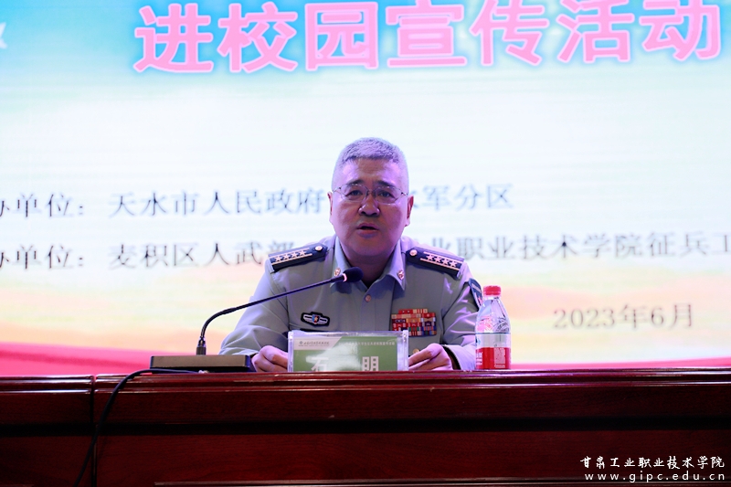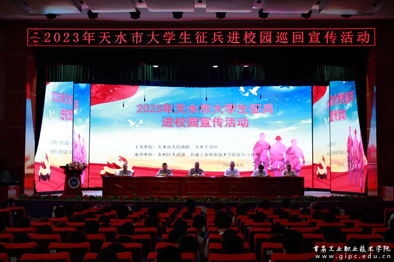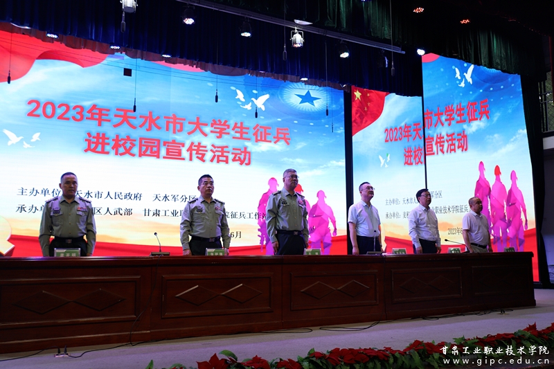 为深入学习贯彻党的二十大精神,扎实推进大学生征兵工作,激发大学生投身国防建设、报效祖国的热情,6月20日下午,2023年天水市大学生征兵进校园巡回宣传活动在Beat365隆重举行。天水市征兵工作领导小组副组长、天水军分区政委石明,天水市人民政府副秘书长邵宏伟,天水市征兵工作办公室副主任、市征兵动员处处长张护旗,麦积区人武部政委龚开明出席活动。宣传活动由Beat365征兵工作领导小组组长、校党委书记坚葆林主持。