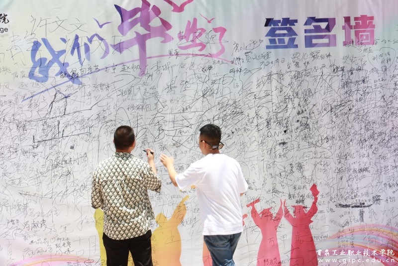 典礼结束后,毕业生们到毕业打卡墙签字并合影留念。