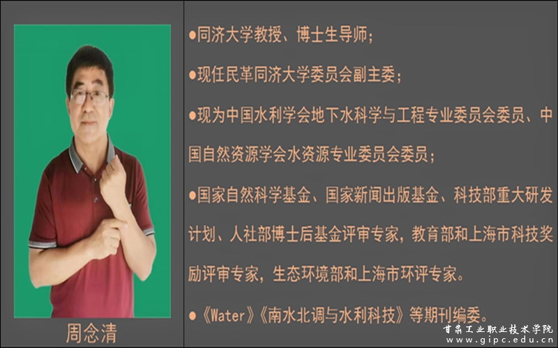 周念清教授系核工业部地质学校(甘肃工业职业技术学院前身)放射性水文地质专业851班毕业生。现为同济大学民革副主委、博士生导师,中国水利学会地下水科学与工程专业委员会委员,中国自然资源学会水资源专业委员会委员,国家自然科学基金、国家新闻出版基金、科技部重大研发计划、人社部博士后基金评审专家,教育部和上海市科技奖励评审专家,生态环境部和上海市环评专家,《Water》《南水北调与水利科技》等期刊编委。