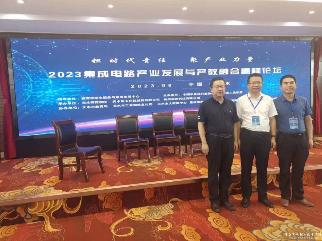 8月5日,由中国半导体行业协会、天水市人民政府共同主办的2023集成电路产业发展与产教融合高峰论坛在甘肃天水市成功举办。论坛汇聚了来自政府、教育界、产业界的领导嘉宾、专家学者和企业代表,着眼集成电路产业发展,共话集成电路产教融合的人才发展路径创新。中共天水市委书记冯文戈,教育部学生服务与素质发展中心副主任方伟,中国半导体行业协会副秘书长刘源超,国家集成电路产业发展咨询委员会委员、中国半导体行业协会专家委员会主任严晓浪,天水华天科技股份有限公司董事长肖胜利参加活动并致辞。会议由中国半导体行业协会封测分会秘书长徐冬梅、深圳市半导体行业协会秘书长常军锋主持。副院长王利军带领相关学院负责人参加。