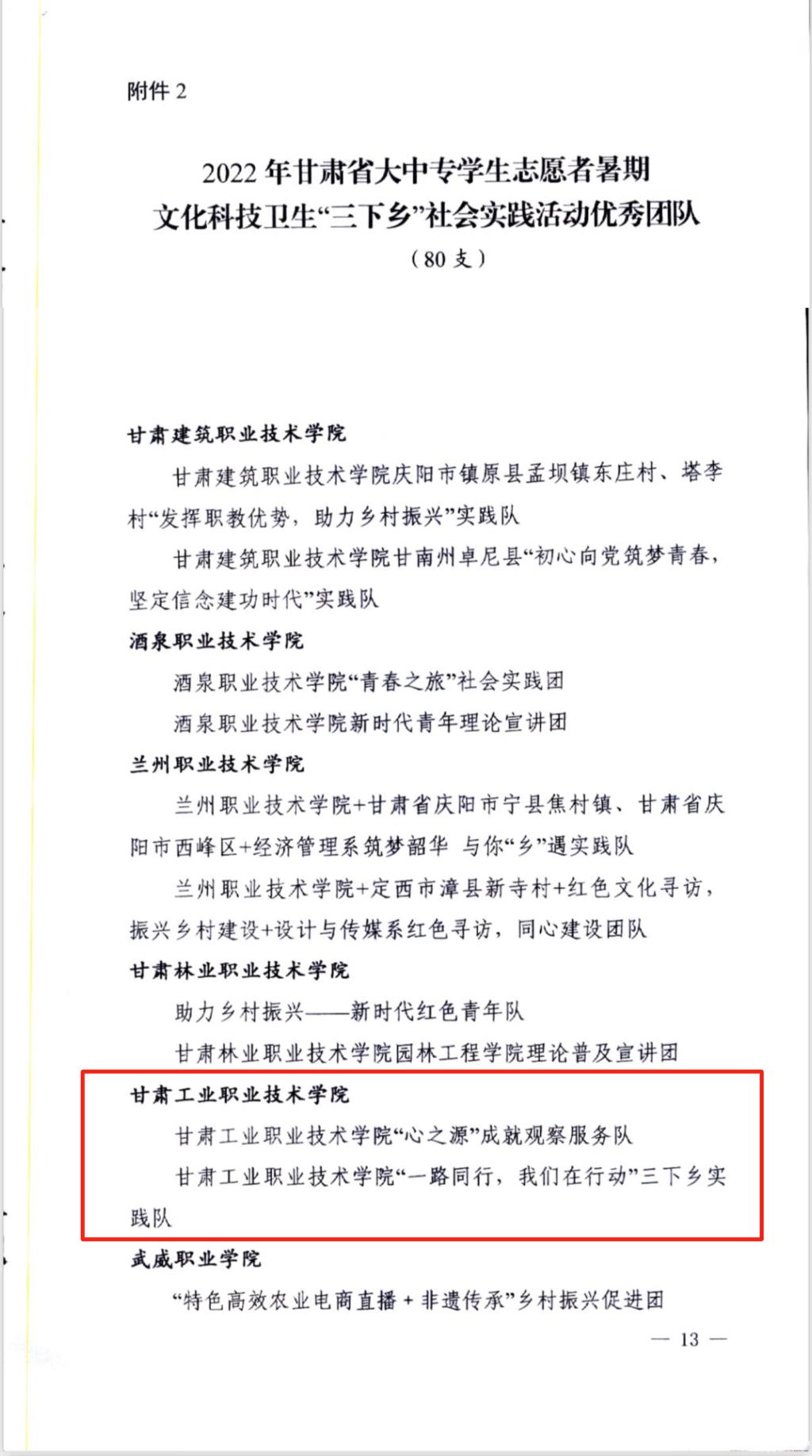2022年甘肃省大中专学生志愿者暑期文化科技卫生“三下乡”社会实践活动以“喜迎二十大 永远跟党走 奋进新征程”为主题,旨在全面贯彻落实团十九大精神,着力深化实践育人体系建设,引导和帮助广大青年学生上好与现实相结合的“大思政课”,在社会课堂中“受教育、长才干、作贡献”。校团委将再接再厉,继续丰富实践渠道载体,发挥实践育人功能,推动社会实践工作,取得更多实践成果。