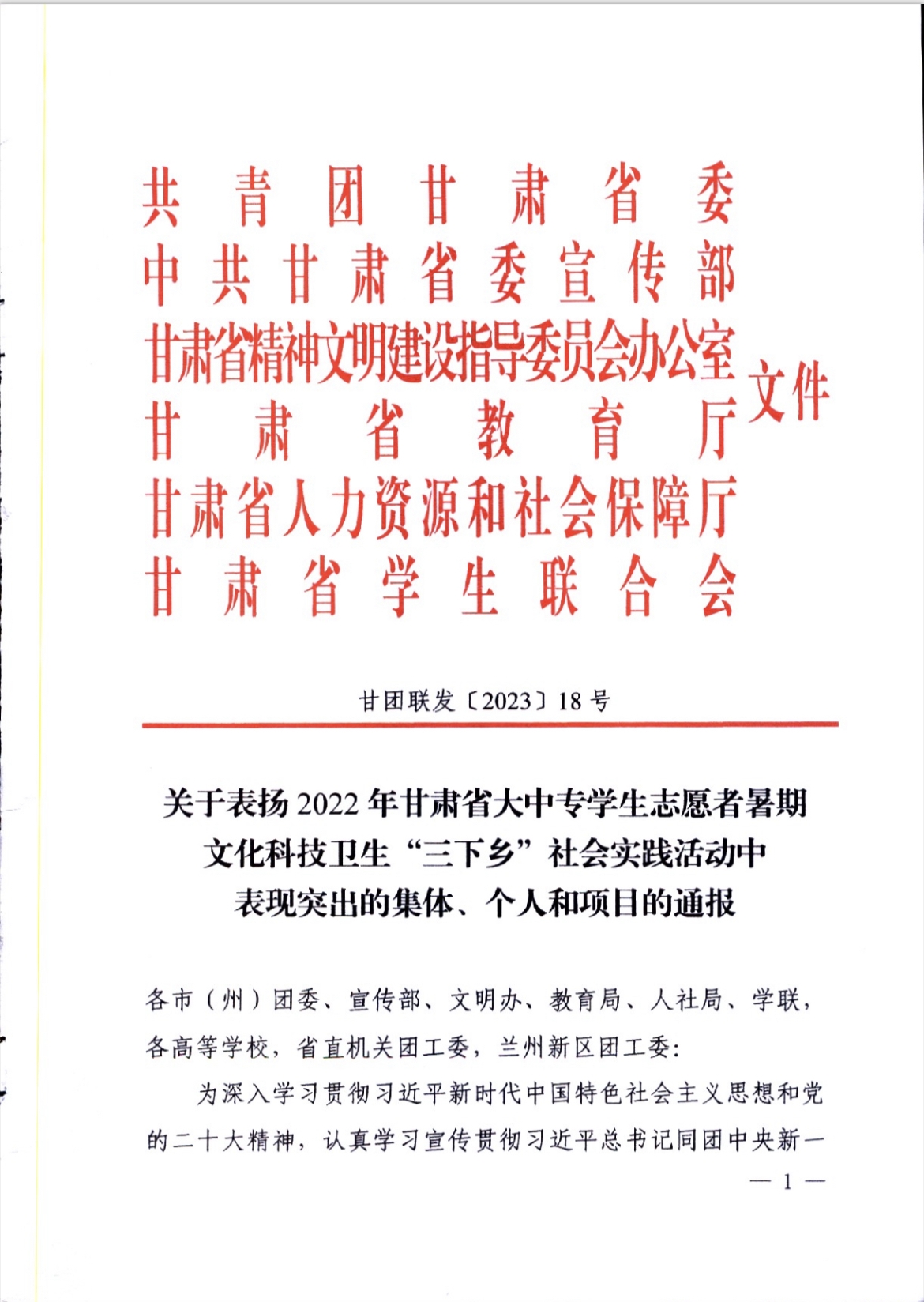 在2022年甘肃省大中专学生志愿者暑期文化科技卫生“三下乡”社会实践活动中,Beat365集体、个人和项目表现突出,获“优秀单位”、“优秀团队”、“优秀学生”多项荣誉,省委宣传部、团省委等单位通报表扬。其中Beat365团委荣获“优秀单位”称号。
