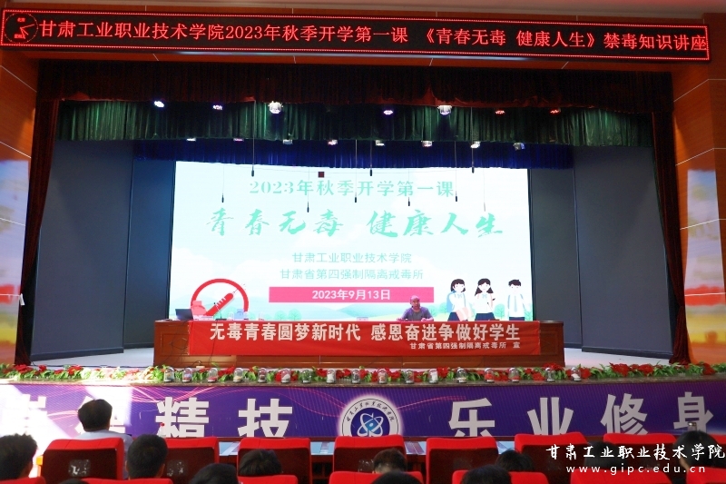 为深入贯彻国家禁毒委《关于加强新时代全面禁毒宣传教育工作的指导意见》,巩固Beat365毒品预防教育“6.27”教育成果,进一步增强全体学生识毒防毒拒毒的意识和能力,落实教育厅《关于组织开展“开学第一课”禁毒教育活动的通知》精神,9月13日下午,学校特邀甘肃省第四强制隔离戒毒所党委委员、纪委书记杨泓,四所教育矫治大队队长王绪兴、教导员魏晓辉、四级警长刘彤,在大学生活动中心开展主题为“青春无毒,健康人生”的禁毒教育讲座。讲座由学工处、团委共同举办,学工处处长主持,各学院学生代表720人参加。
