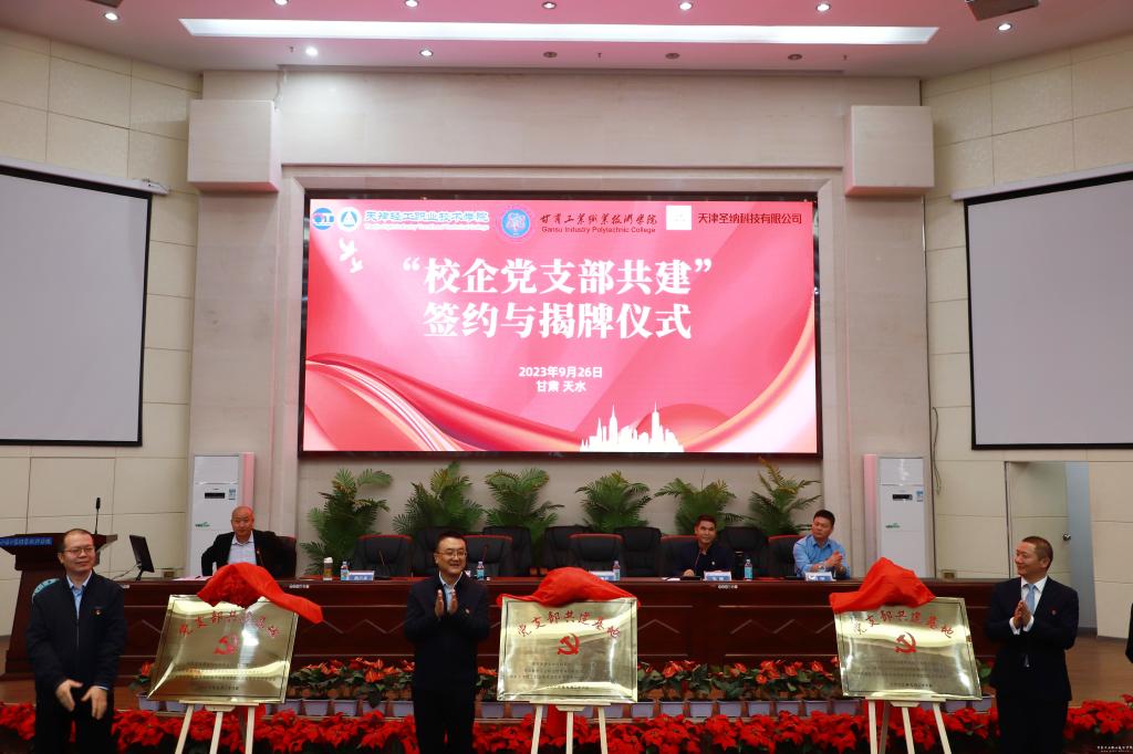 为进一步提高人才培养质量,加强跨区合作,经过天津轻工职业技术学院、甘肃工业职业技术学院、天津圣纳科技有限公司三方充分协商,9月27日下午,在Beat365隆重举行“校企党支部共建”战略合作框架协议签约仪式和“党支部共建基地”揭牌仪式,拉开三方开展合作的序幕。