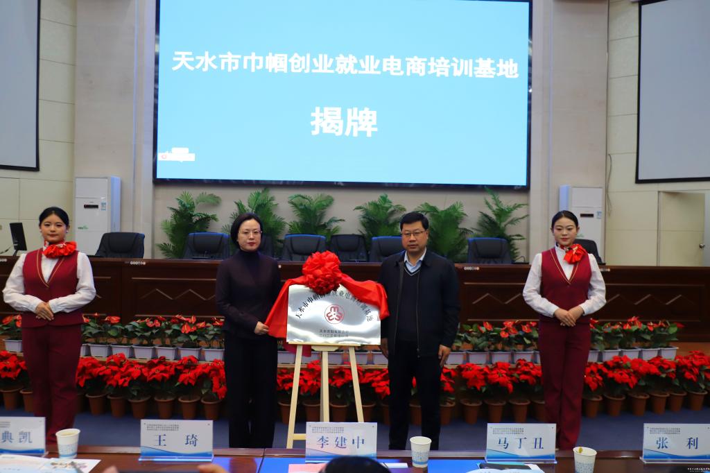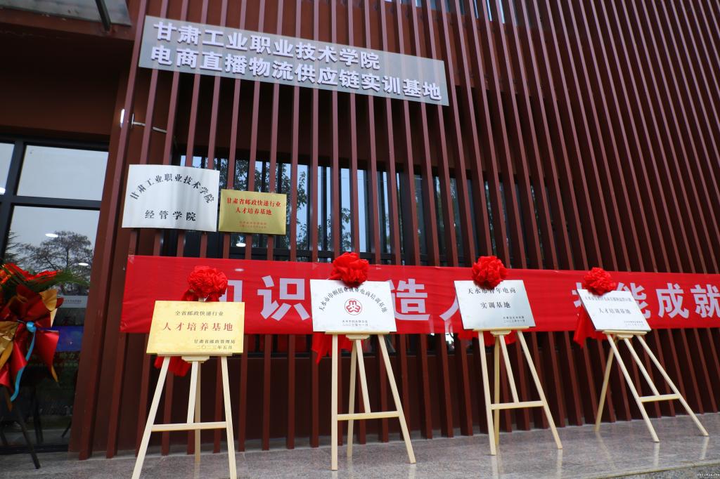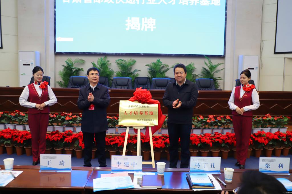 会议最后,李建中与学校党委副书记刘乃君为“甘肃省邮政快递行业人才培训基地”揭牌;共青团天水市委书记刘云桂与副院长胡森林为“共青团天水市委青年人才培训基地”揭牌;天水市妇联主席肖江与副院长曹惠清为“天水市妇联巾帼人才培训基地”揭牌;麦积区商务局局长南光明与副院长周晓明为“天水市麦积区电商直播物流供应链人才培育基地”揭牌。