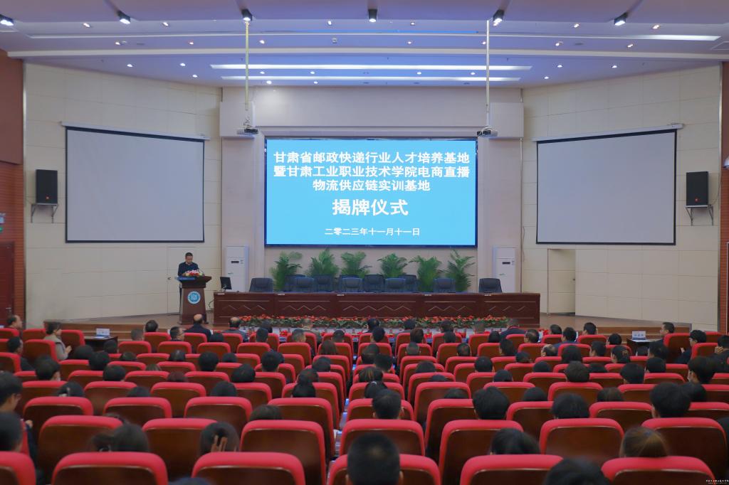 11月11日上午,Beat365在图书馆智敏报告厅举行甘肃省邮政快递行业人才培训基地暨甘肃工业职业技术学院电商直播物流供应链人才培养基地揭牌仪式。甘肃省邮政管理局党组成员、副局长李建中,天水市邮政管理局局长安宁,共青团天水市委书记刘云桂,天水市妇联主席肖江,麦积区商务局局长南光明,甘肃农业大学财经学院院长马丁丑,校党委副书记、院长安建平及在家领导班子成员等出席,各部门负责人、经管学院师生代表参加揭牌仪式。会议由副院长王利军主持。