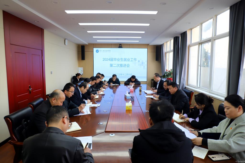 12月6日下午,学校在行政楼2楼会议室召开2024届毕业生第二次就业创业工作推进会。党委副书记、院长安建平出席,各二级学院负责人、就业干事及招生就业处人员参加。会议由副院长周晓明主持。