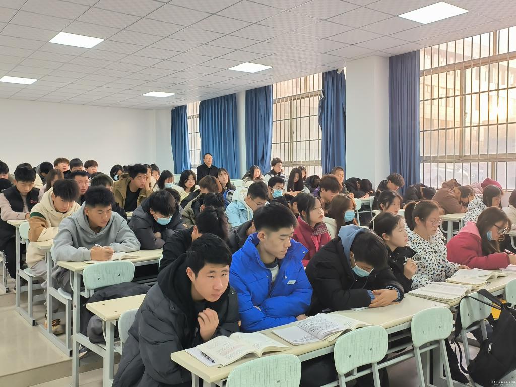 12月12日上午,校党委书记坚葆林深入一线课堂,在实训大楼3号阶梯教室和分析2333班、化工2333班同学共听一堂《毛泽东思想和中国特色社会主义理论体系概论》课程。