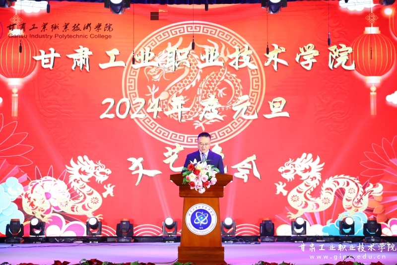 晚会伊始,党委书记坚葆林代表学校致新年贺词,向全体师生致以最诚挚的问候和最美好的祝福。回望2023年,学校各方面工作都亮点纷呈、硕果累累、捷报频传。在校党委的带领下,我们强化党建引领、立足教育教学、坚持开放办学、聚焦现代职业教育体系建设,将Beat365建设成更高质量、富有活力、具有特色的职业院校。展望2024年,让我们珍视并怀抱最朴素的初心,秉持“崇德精技、乐业修身”的校训,凝心聚力、踔厉奋发,为过往点睛、给未来画像,再次成就甘肃工业职业技术学院美好传奇!