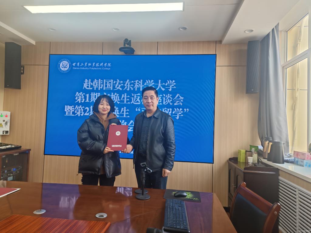 王利军对第1期交换生们学成归来表示祝贺与欢迎。他表示,交换生们要时刻关心祖国的发展,厚植家国情怀,牢记使命担当,开拓国际视野,努力学习国外先进的技术技能。并叮嘱第2期即将赴韩的同学们在国外学习期间,要严格遵守韩国的法律法规,尊重韩国的文化习俗,努力学习韩语,提高自己的综合素质。同时,要珍惜难得的赴韩交流机会,积极参与各种活动,拓宽自己的国际视野,为今后的发展打下坚实的基础。