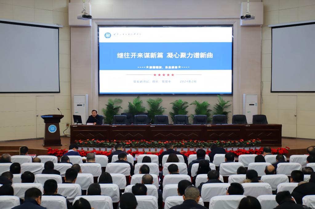 党委副书记、院长安建平以《继往开来谋新篇,凝心聚力谱新曲》为题,回顾了2023年学校取得的工作和成绩,并从23项任务展开对2024年学校重点工作作了具体安排,为学校2024年工作开展制定了作战方案和路线图。