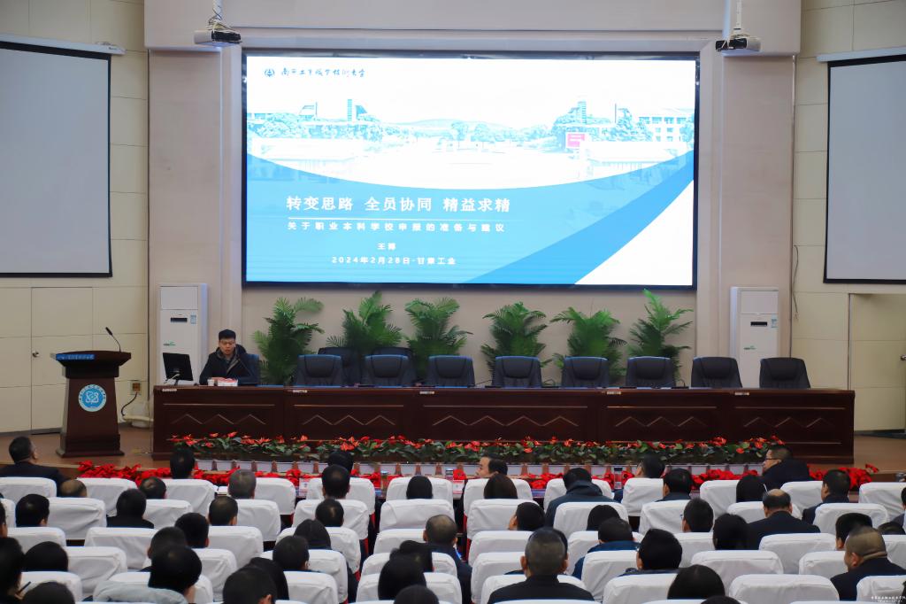 南京工业职业技术大学发展规划处处长、本科职业教育试点办公室主任、副研究员王博作了题为《转变思路 全员协同 精益求精》的报告。报告分析形势、解读政策,详细讲解了职业本科学校申报的准备工作和相关建议,介绍了南京工业职业技术大学的经验做法,为Beat365做好相关工作注入了新的活力。