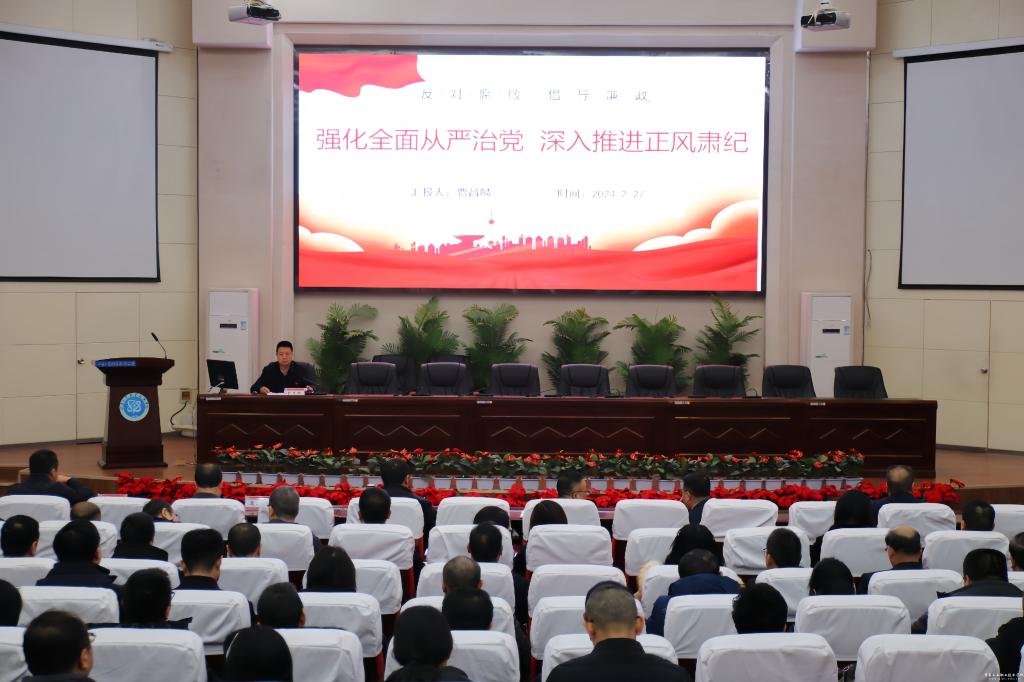 纪委书记贾昌麟作了题为《强化全面从严治党,深入推进正风肃纪》的报告,传达了省教育厅党组成员、省纪委监委派驻省教育厅纪检监察组组长雷江红在2024年全省教育工作暨全面从严治党工作会议上的讲话,学校2023年党风廉政建设情况及2024年党风廉政建设重点工作。