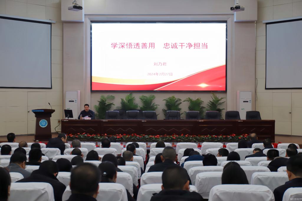 党委副书记刘乃君作了题为《学深悟透善用,忠诚干净担当》的报告,分析了学校干部队伍现状,要求党员干部要加强理论学习、夯实理论功底,自觉用新时代党的创新理论观察新形势、研究新情况、解决新问题,在学深悟透善用上下功夫,做信念坚定、为民服务、勤政务实、敢于担当、清正廉洁的好干部。