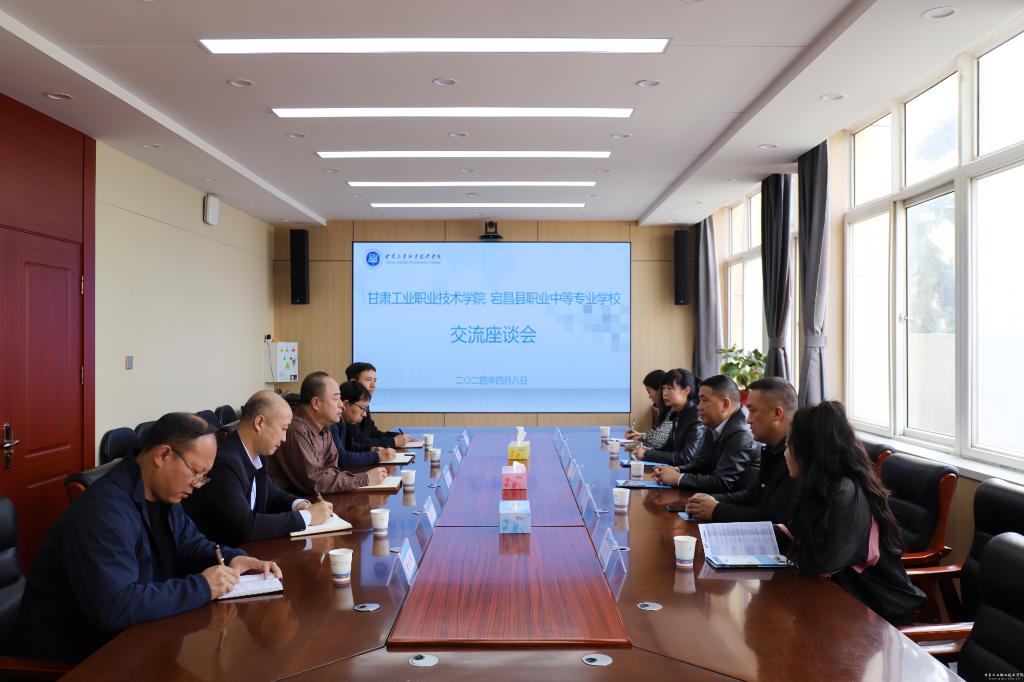 为进一步推进中高职贯通人才培养工作,4月8日下午,宕昌县职业中等专业学校党委书记赵文泉一行5人,来Beat365就中高职联合办学相关事宜开展洽谈交流。学校在行政楼二楼会议室召开座谈会,副院长周晓明出席会议,招生就业处及电信学院相关人员参加会议。