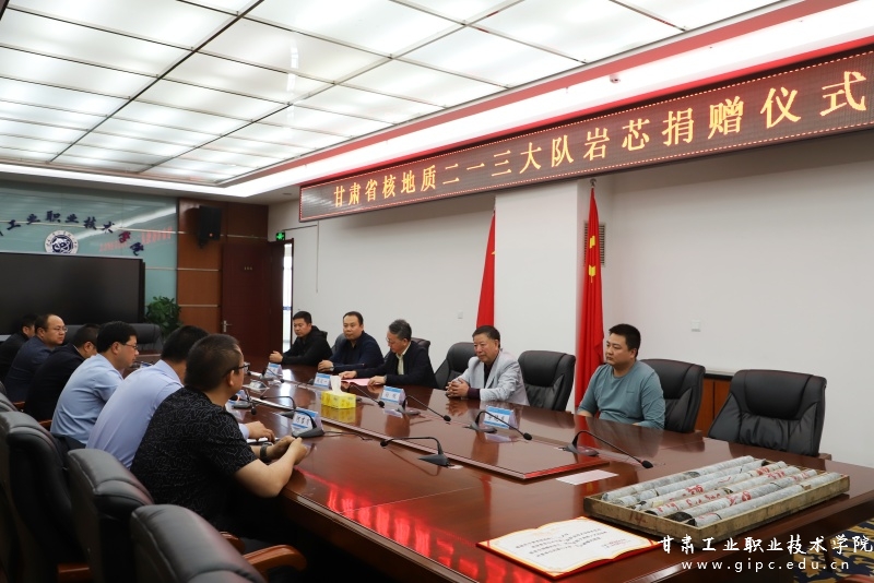 4月23日,甘肃省核地质二一三大队向Beat365地质学院捐赠一批地质钻探岩芯,捐赠仪式在图书馆四楼会议室举行。甘肃省核地质二一三大队大队长周定一、副大队长孙明一行5人及Beat365副院长王利军、曹惠清出席,地质学院班子成员及相关专业负责人、学生代表参加。