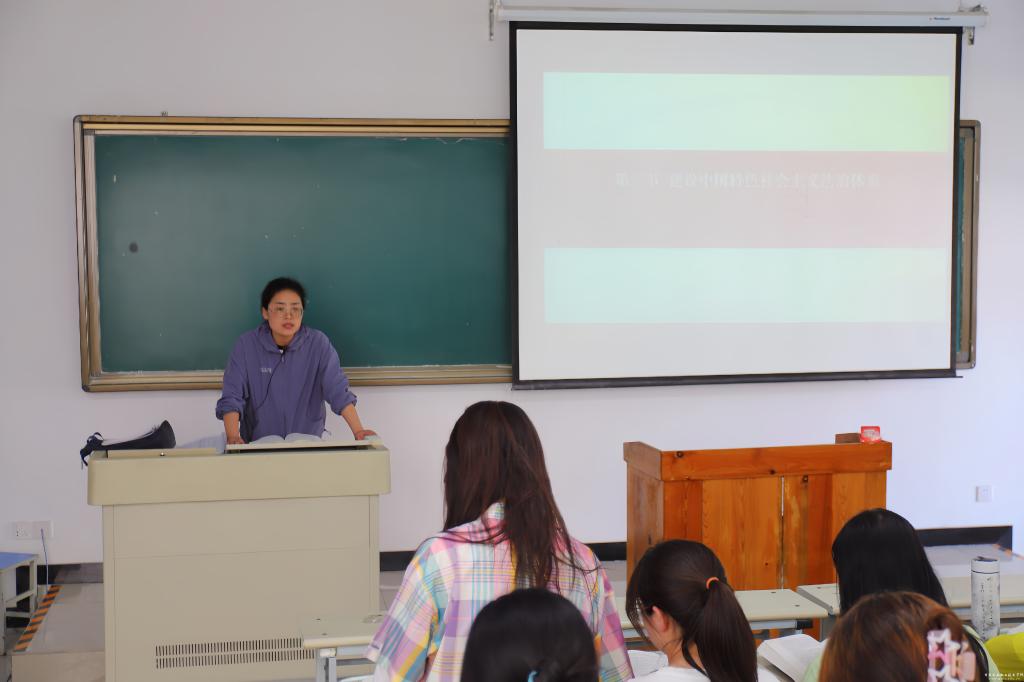 为深入学习领会、全面贯彻落实习近平总书记对学校思政课建设的重要指示精神,扎实推进学校思政课建设,提高思政课教学质量和水平,加强思政课教师之间的沟通、交流和相互学习,本学期第13教学周,马克思主义学院组织开展了集体听课活动。5月22日上午,副院长曹惠清在实训大楼1号阶梯教室听评思政课。马克思主义学院教师陪同听课。