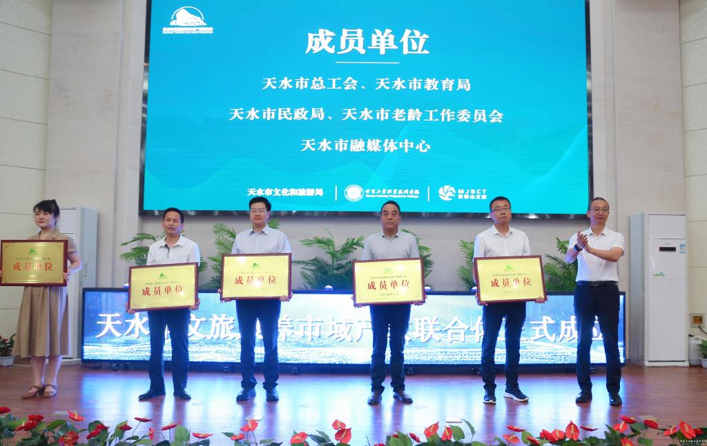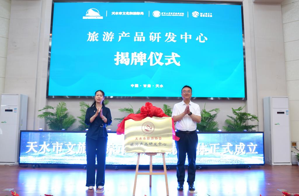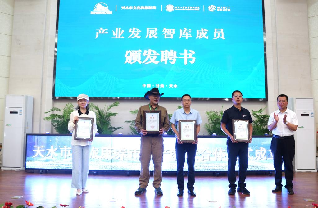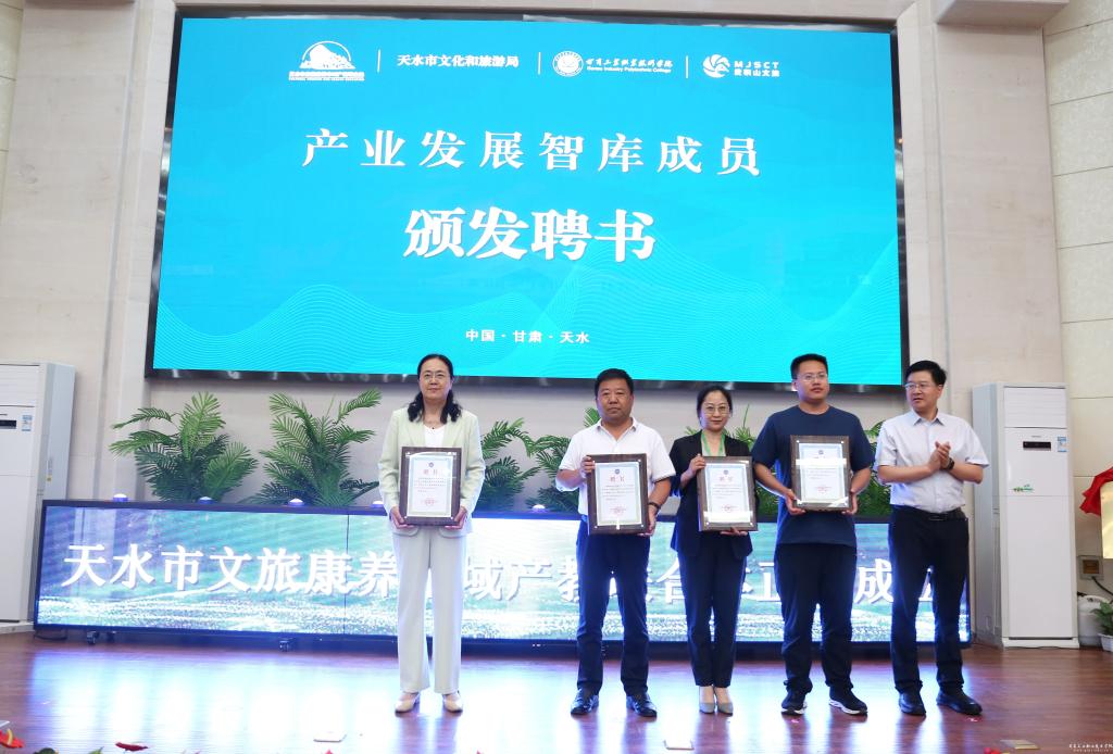 会上,与会领导共同按下启动键,宣布天水市文旅康养市域产教联合体正式成立,并为牵头单位和成员单位授牌。大会还为旅游产品研发中心揭牌,并为文旅康养产业发展智库成员颁发聘书。