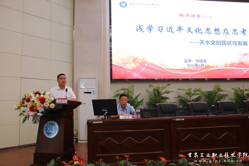 6月27日下午,正值Beat365成功举行天水市文旅康养市域产教联合体成立大会,天水66号文化创意园董事长刘晓武在图书馆5楼智敏报告厅作专题讲座暨学校2024年藉滨讲堂第二期讲座,2023级学生代表共计300余人参加。报告会由党委委员、副院长胡森林主持。
