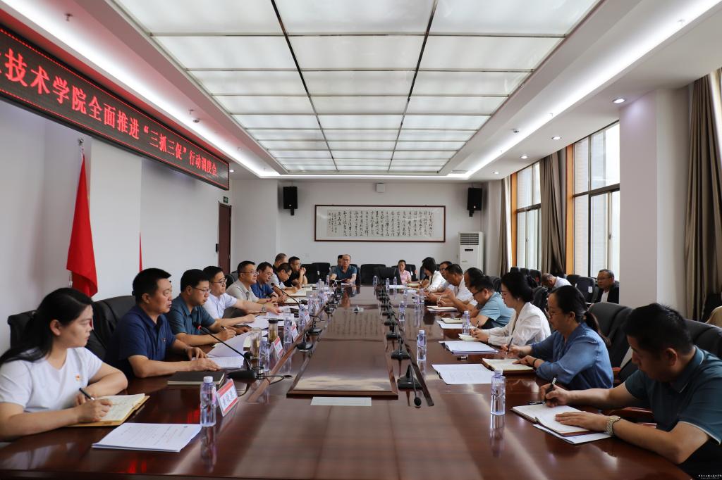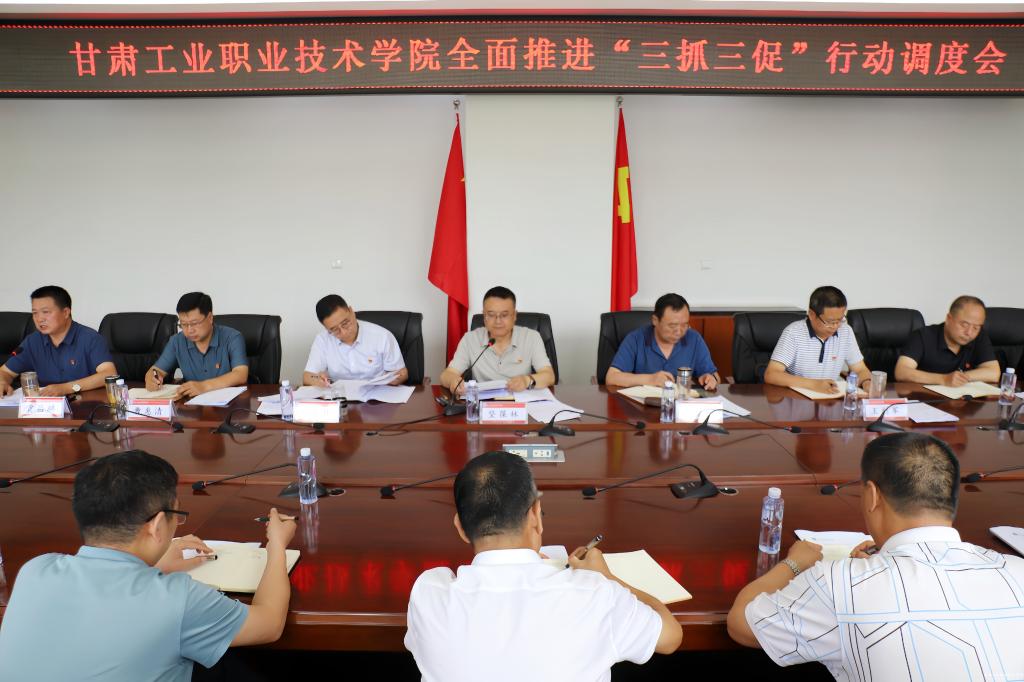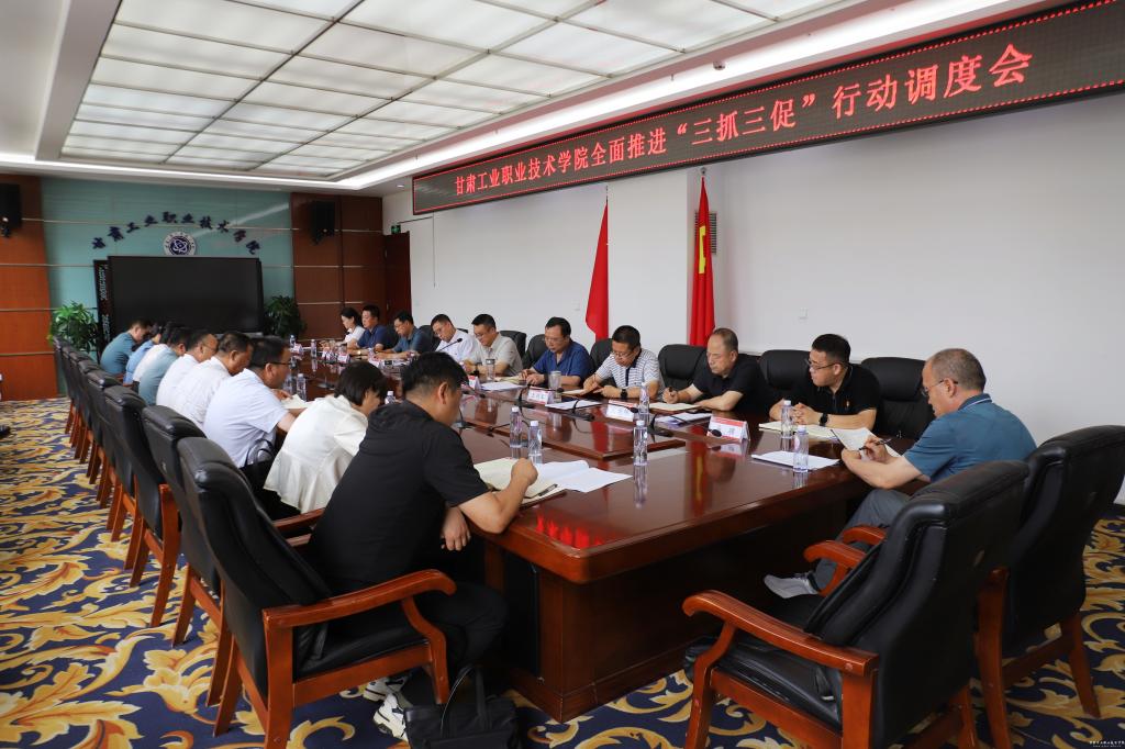 7月22日上午,学校在图书馆四楼会议室召开全面推进“三抓三促”行动调度会。学校党委领导班子成员出席,党委工作部门主要负责同志,工会、团委主要负责同志,各直属党支部书记,二级学院党组织主要负责同志参加。会议由党委书记坚葆林主持。