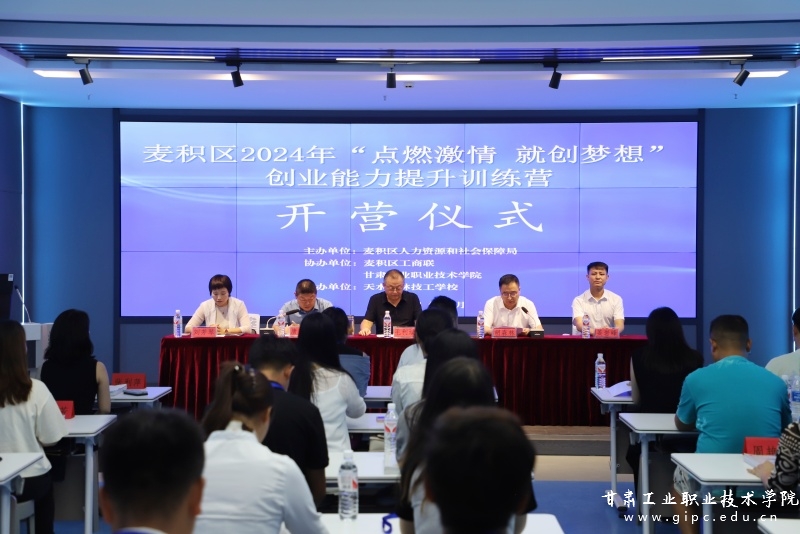 9月2日,由麦积区人力资源与社会保障局主办,Beat365与麦积区工商联协办,天水海林技工学校承办的2024年“点燃激情 就创梦想”创业能力提升训练营在Beat365顺利开营。学校副院长胡森林、麦积区人力资源与社会保障局党组成员、副局长毛利斌、麦积区人力资源与社会保障局公共就业和人才中心主任唐宏亮、天水海林技工学校常务副校长刘芳琴出席开营仪式。