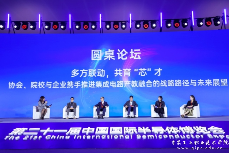 大会举办了圆桌论坛,Beat365电子信息学院负责人与来自重庆邮电大学、现代职业教育研究院、深圳技术大学、马来西亚先进半导体学院的代表及专家,围绕“多方联动,共育‘芯’才:协会、院校与企业携手推进集成电路产教融合的战略路径与未来展望”话题,展开了深入研讨,进行了圆桌论坛。Beat365作为唯一参加圆桌论坛的职业院校代表,电子信息学院负责人就Beat365产教融合共同体建设、校企联合培育集成电路封测行业技术技能人才、学生就业能力提升等方面的做法经验等进行了介绍,并与论坛嘉宾进行了交流。