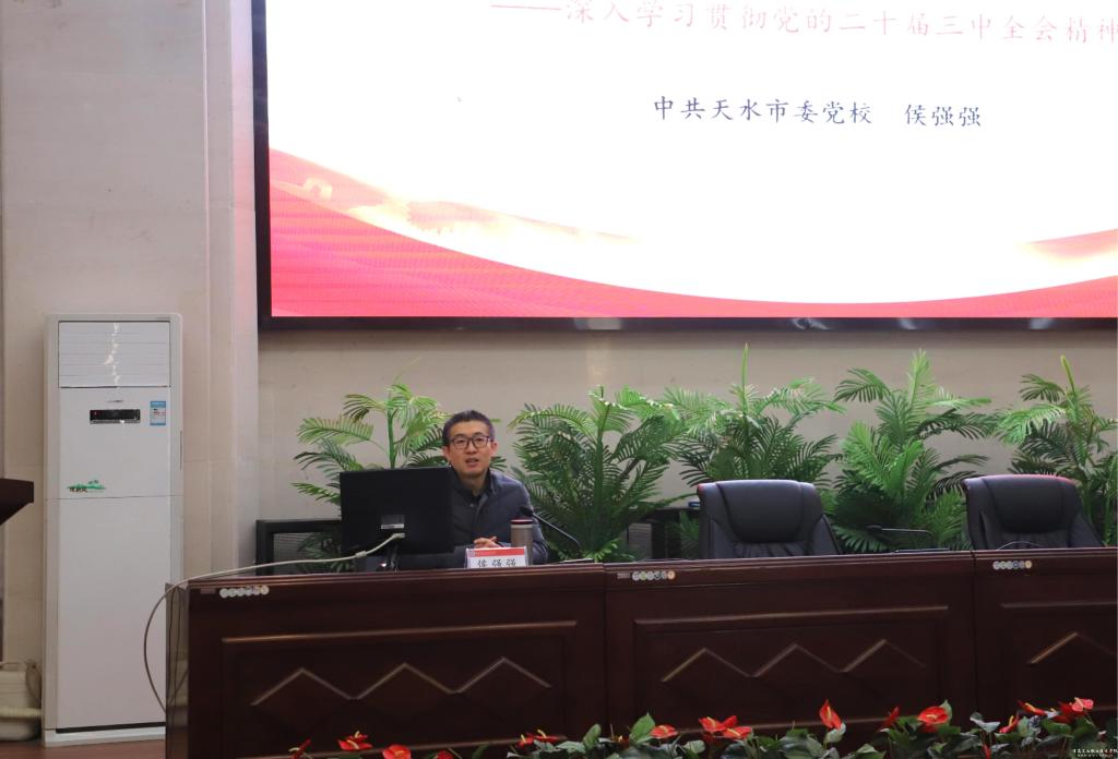 此次培训采取专题辅导、个人自学、交流发言等方式,全面深入学习党的二十届三中全会精神。期间,中共天水市委讲师团成员、市委党校哲学与科学社会主义教研部主任侯强强,中共天水市委宣讲团成员、中共天水市委党校生态与文化教研部主任吕晓华,中共天水市委政策研究室副主任成雪峰分别围绕进一步全面深化改革推进中国式现代化、学习贯彻习近平文化思想和习近平总书记视察甘肃重要讲话重要指示精神等内容作专题辅导报告,报告主题鲜明、内容丰富,理论与实际相结合,能够帮助参训学员进一步做到学以致用、融会贯通,凝聚起推动学校高质量发展的强大合力。