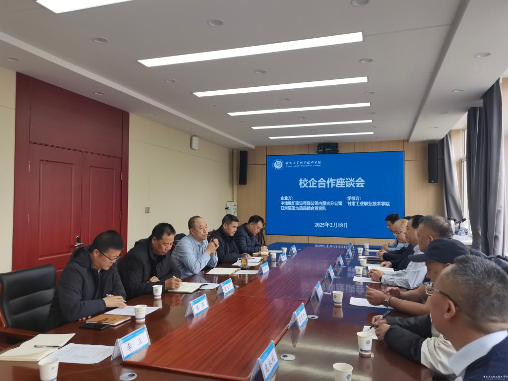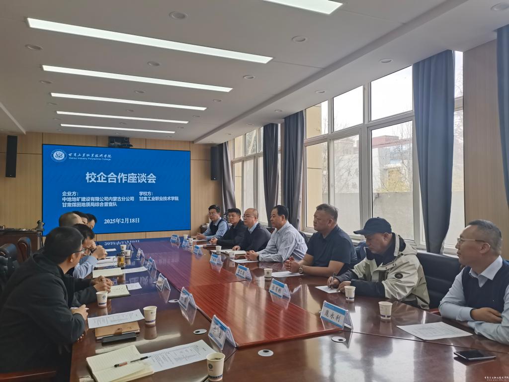 2月18日下午,甘肃煤田地质局综合普查队、中地地矿建设有限公司(内蒙古分公司)企业代表来Beat365开展校企合作交流座谈会。会议在行政楼二楼会议室召开,副院长周晓明出席,招生就业处、教务处、地质学院等部门相关人员参加。