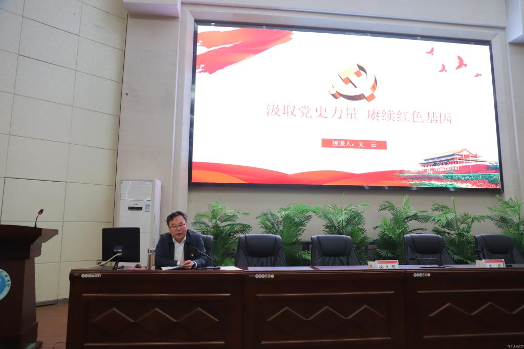 开班式后,文云以《汲取党史力量 赓续红色基因》为题讲授首场专题党课培训。