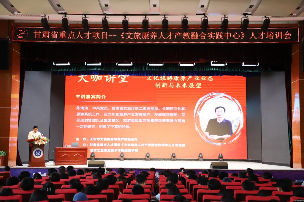 正值2025(乙巳)年公祭中华人文始祖伏羲大典前夕,6月13日,由天水市文旅康养市域产教联合体主办,甘肃工业职业技术学院旅游学院及《文旅康养人才产教融合实践中心》项目组承办的“大咖讲堂”第二期在Beat365大学生活动中心开讲。本期讲堂特邀甘肃省文化和旅游厅原二级巡视员、资深文旅专家陈海涛作专题报告。