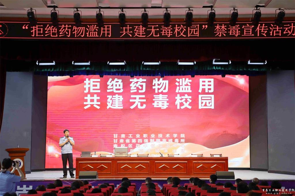 为深入贯彻落实国家“全民禁毒宣传月”工作部署,提高Beat365大学生识毒、防毒、拒毒意识,营造健康无毒的校园环境,6月23日,学校联合甘肃省第四强制隔离戒毒所共同开展了“拒绝药物滥用 共建无毒校园”禁毒宣传进校园活动。甘肃省第四强制隔离戒毒所党委委员、副所长李伟国,教育纠治大队副大队长李嘉玮一行五人,花牛镇司法所所长张正华,花牛镇综治中心专干崔江涛等干警,Beat365党委委员、副院长周晓明出席活动,学工处、保卫处、校团委等部门负责人及600余名师生参与。