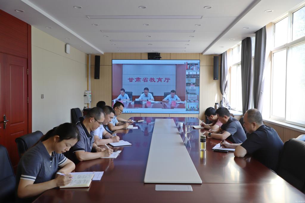 7月9日上午,甘肃省教育厅召开全省职业教育与成人教育工作推进视频会,学校在行政楼二楼会议室设立分会场。党委副书记、院长张利军,副院长周晓明及教务处、继续教育学院相关负责人参加会议。