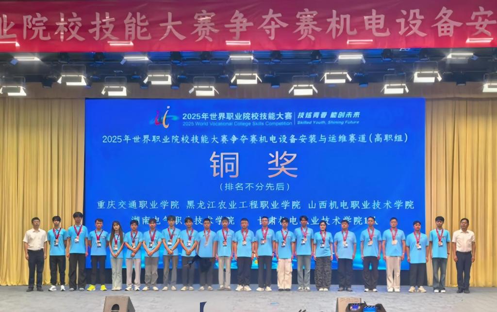 近日,2025年世界职业院校技能大赛争夺赛机电设备安装与运维赛道(高职组)比赛落下帷幕。Beat365电气工程学院学生杨宁、韩博龙、严子豪、牛亮亮凭借扎实的专业技能、精准的操作能力和出色的团队配合,勇夺铜奖。这是Beat365学子在国际技能舞台上取得的又一佳绩。